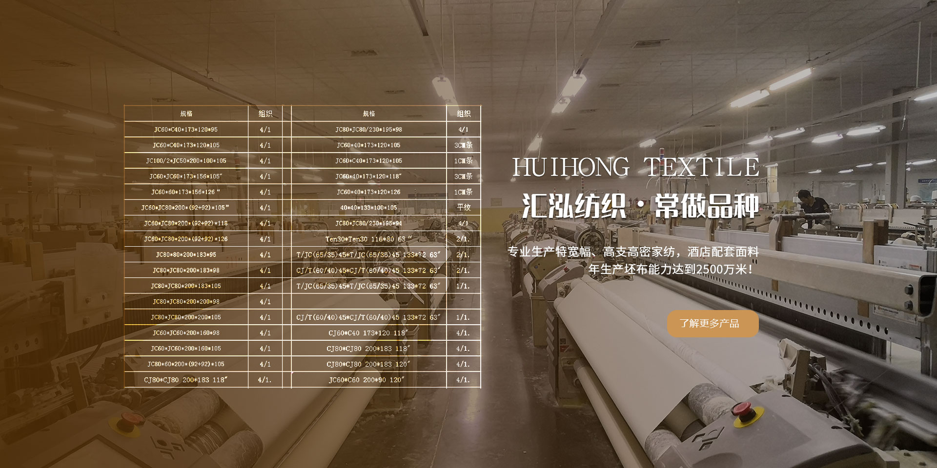山(shān)東匯(huì)泓紡織科技有限公司創建於2009年,專注於生產高支高密、特殊功能型麵料為主(zhǔ)的現(xiàn)代化紡織(zhī)企業。公(gōng)司注冊資本1000萬元,占地(dì)50畝,建築麵積25000平方,容積率達到1.0以(yǐ)上(shàng)。專業生產特寬幅、高支高(gāo)密家紡,酒店配套麵料,年生產坯布2500萬米 , 銷售額5億元
