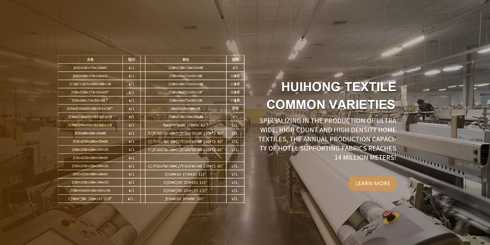 Specializing in the production of extra-wide, high-count and high-density home textiles, hotel supporting fabrics, with an annual production of 25 million meters of grey fabrics!